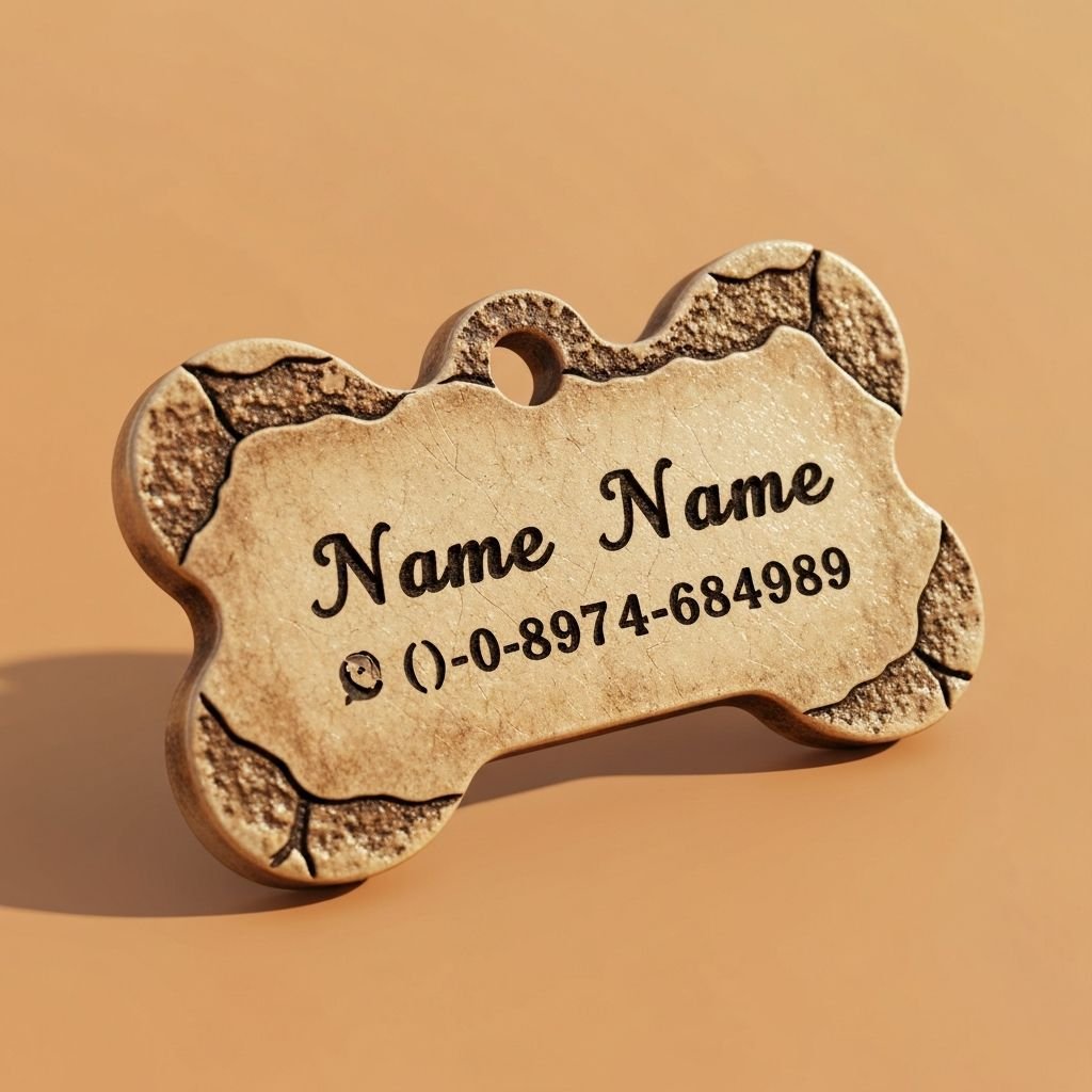 Bone-shaped metal tag with laser engraving. Keep your beloved pet safe with style.
